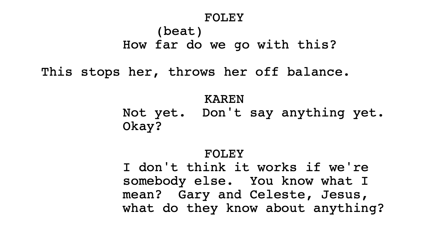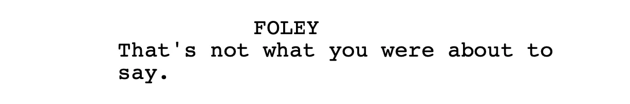 From here, the dialogue at the table skates dangerously close to talking about Foley’s partners in crime, even as the hotel room action - imaginary or predictive - heats up.